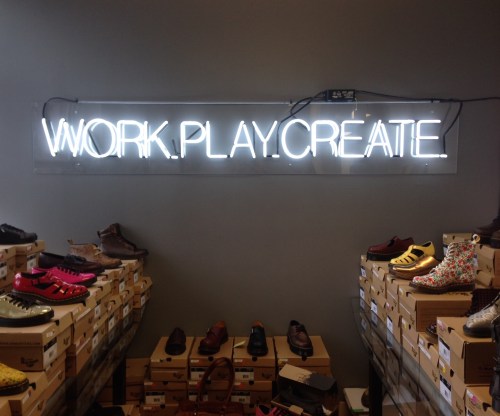 I had the opportunity to attend Press Days hosted by Lotus Leaf Communications on Wednesday. It was my first time visiting Lotus Leaf’s office space in trendy King West, and I was thrilled to see the latest collections from the brands they represent. I fell in love with this neon sign, Work. Play. Create, that adorns their Dr. Martens room. I even took home two new pairs of Dr. Martens!